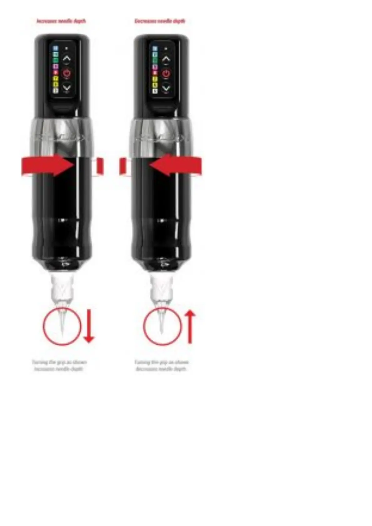 To adjust needle depth, hold the machine body and PowerBolt while turning the Grip. A counter