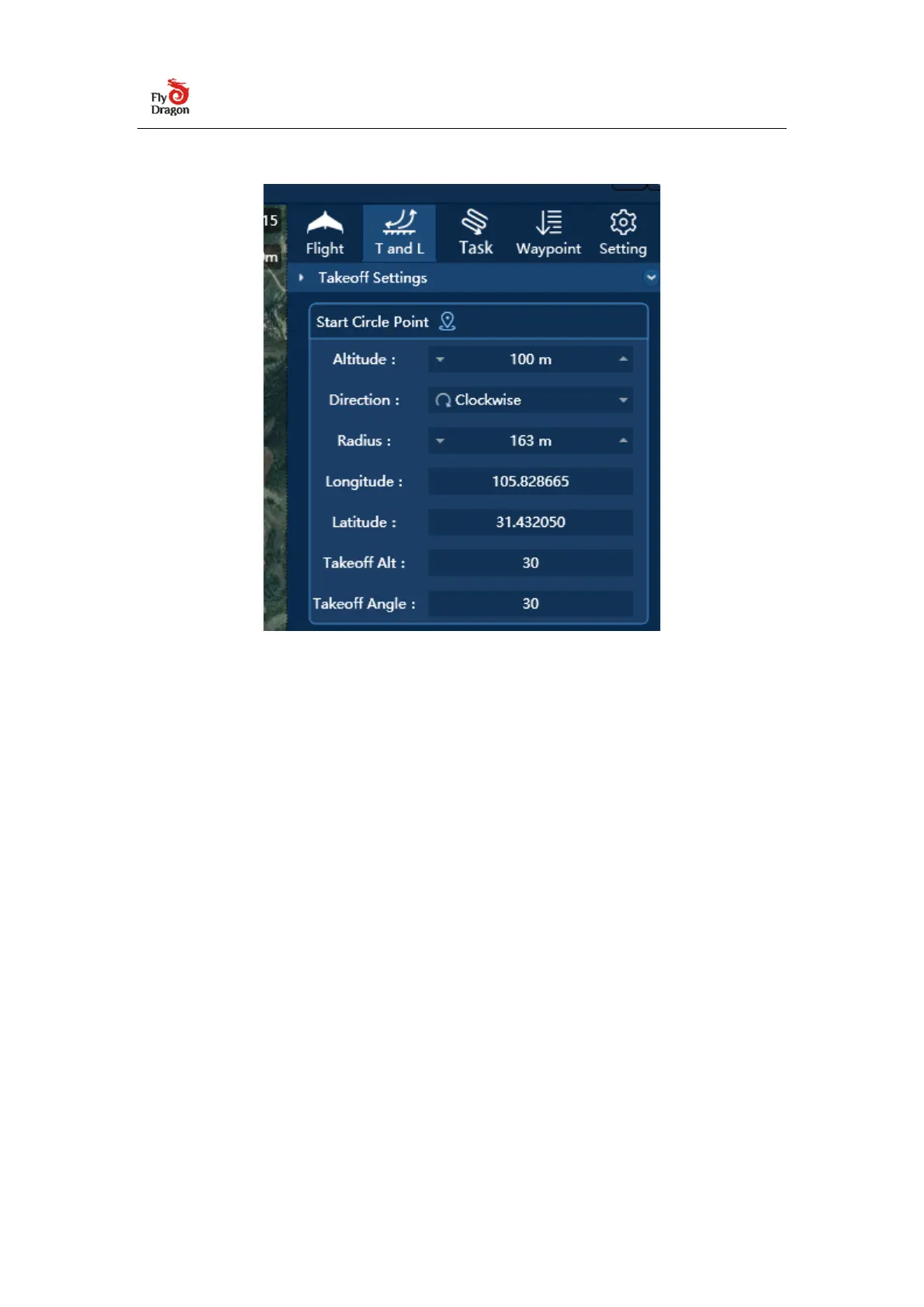 Drag the take-off circle point directly to a suitable position in the map display