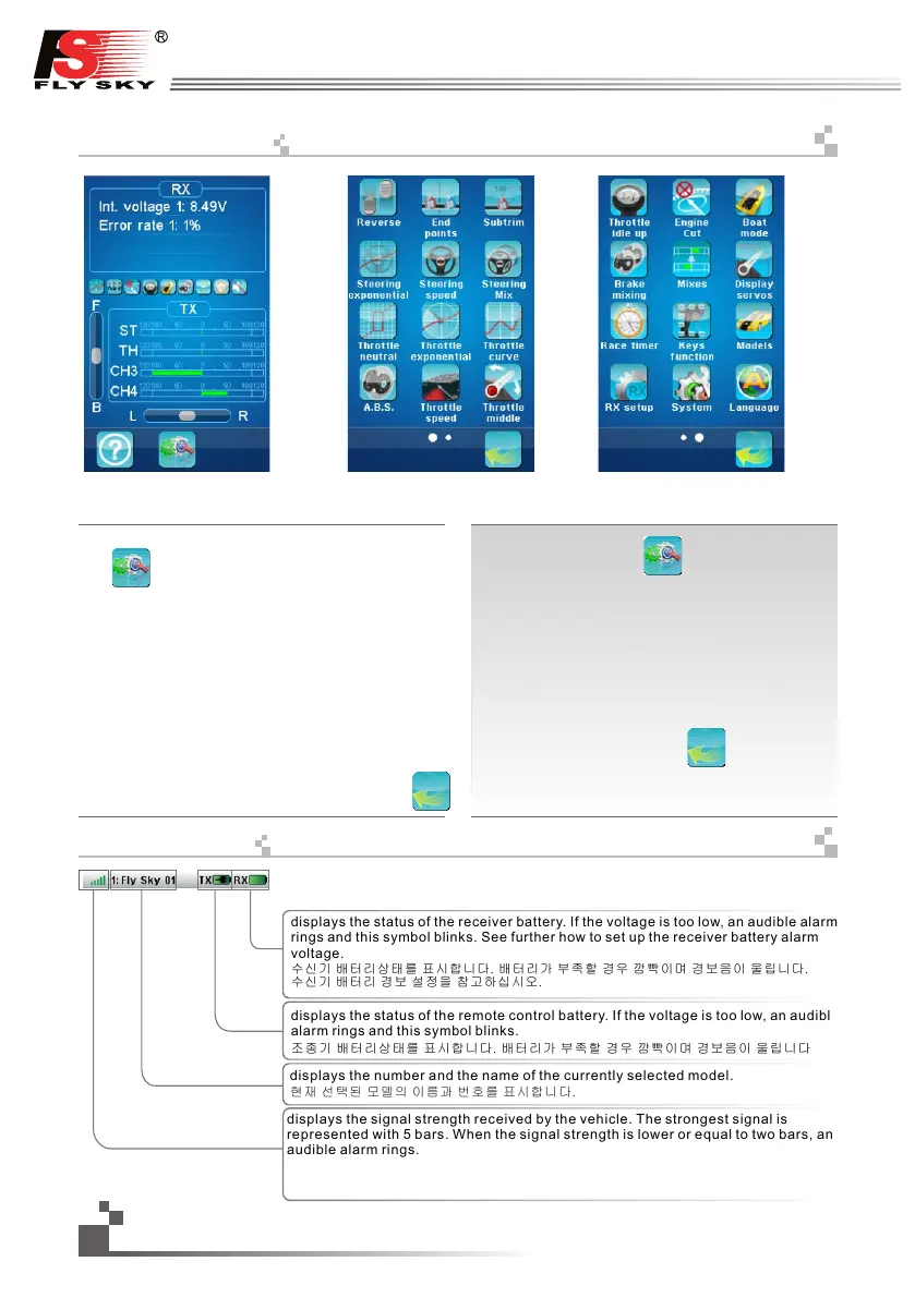displays the status of the receiver battery. If the voltage is too low, an audible alarm
