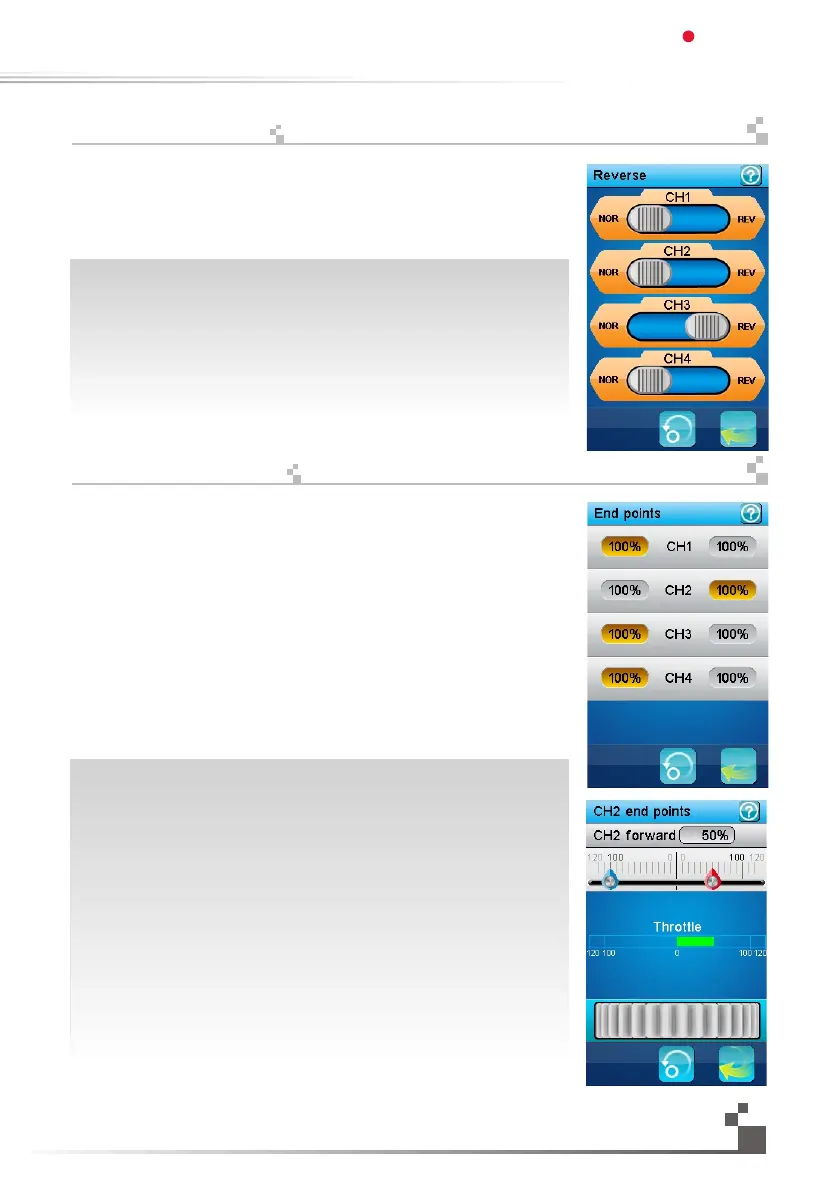 The end points function individually adjusts the low and high travel limit of each servo on
