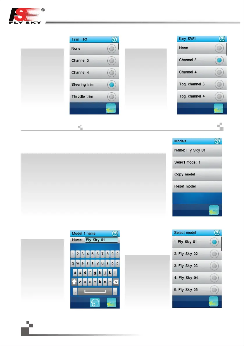 메뉴는 모델구성에 수행할 작업을 선택합니다.