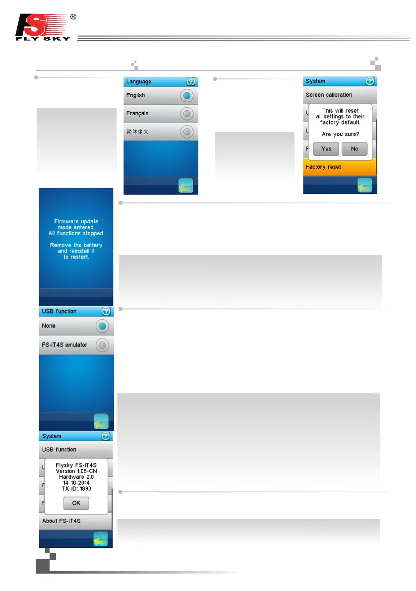 2. Switch on the transmitter, then touch “system”-----“USB function”------“FS-IT4S simulator”.