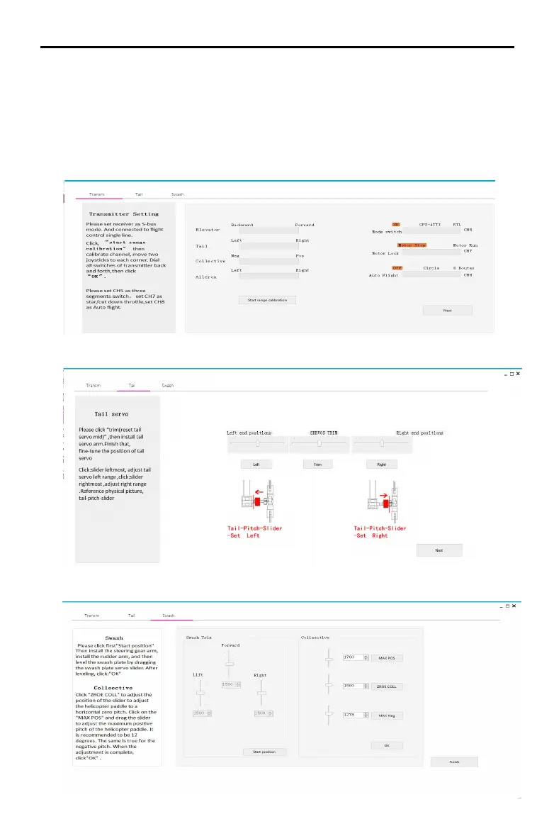 9,Enter the tail servo installation option and follow the instructions on the left to