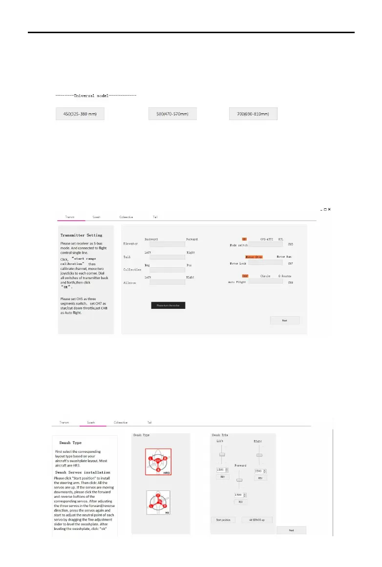 swashplate type according to the left prompt, then adjust the forward and