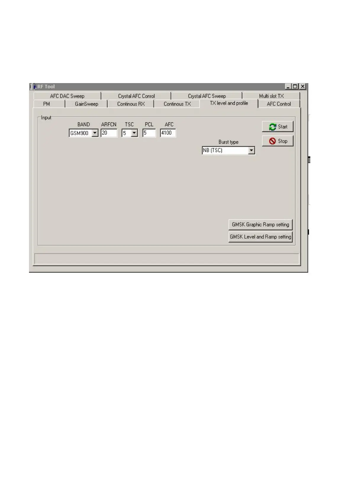 TX level and profile is intended for checking the Transmitter’s output power, ramping profile