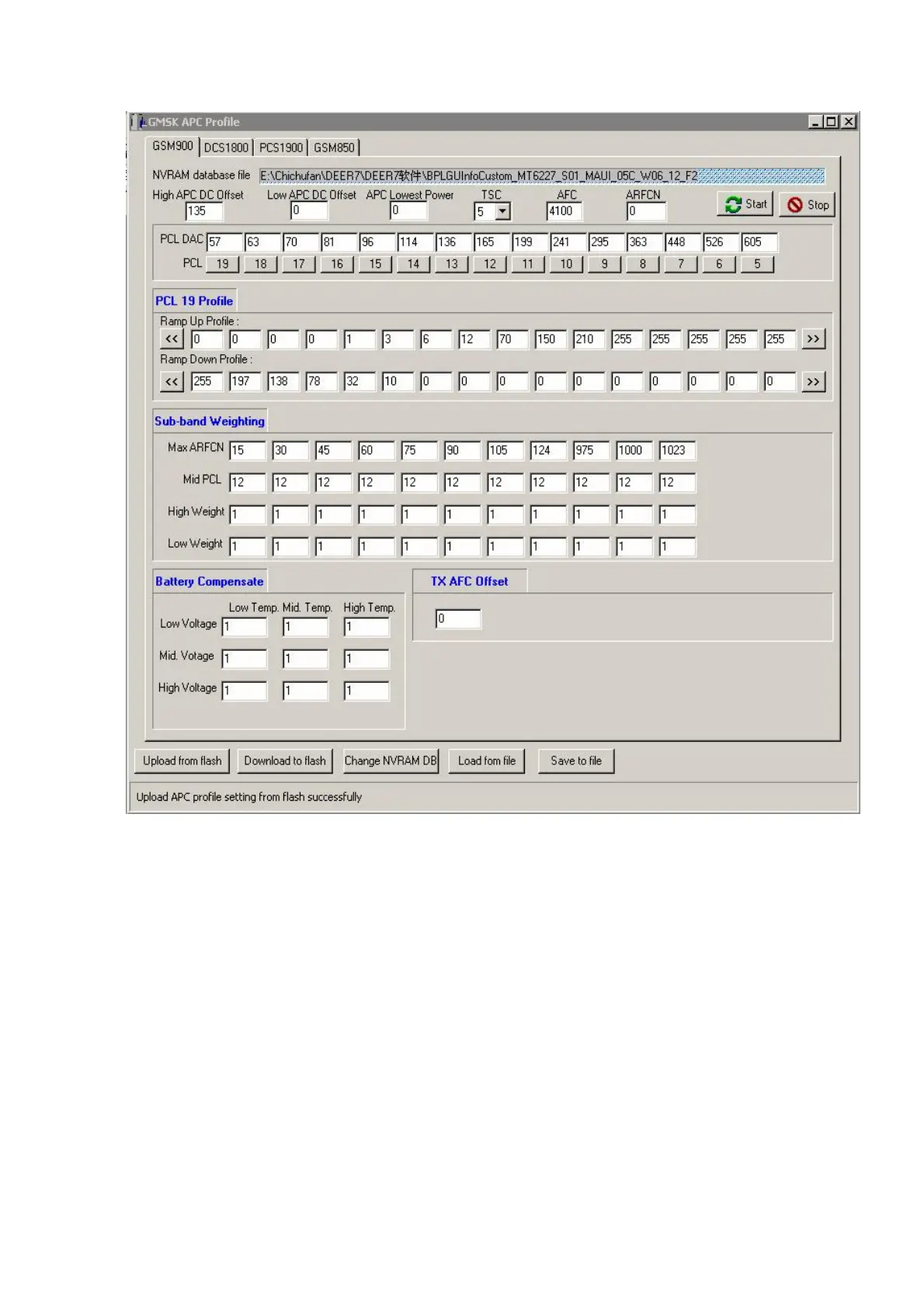 Follow below setting page the set the corresponding TX parametersARFCN, TSC, PCL DAC