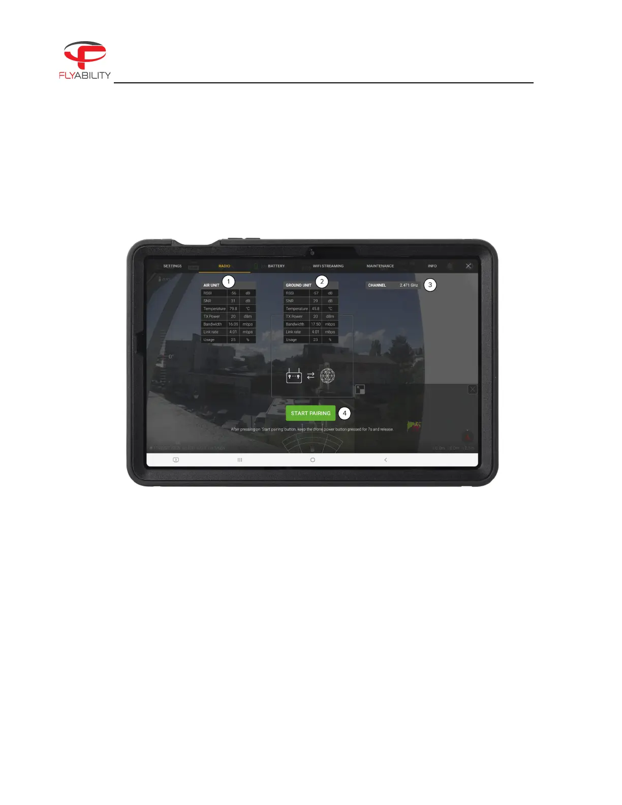 This panel displays detailed data about the radio link quality between the controller and the aircraft.