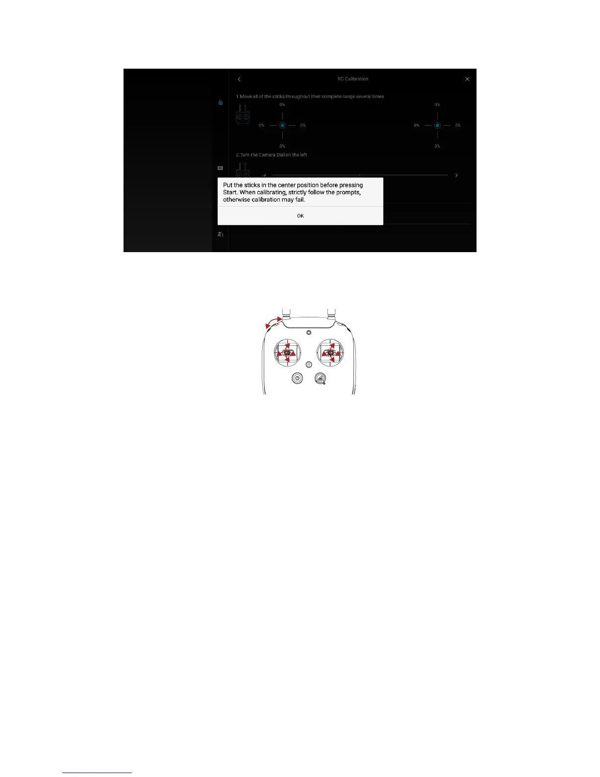 4. Move the left and rights sticks throughout their maximum positions and repeat several times. The