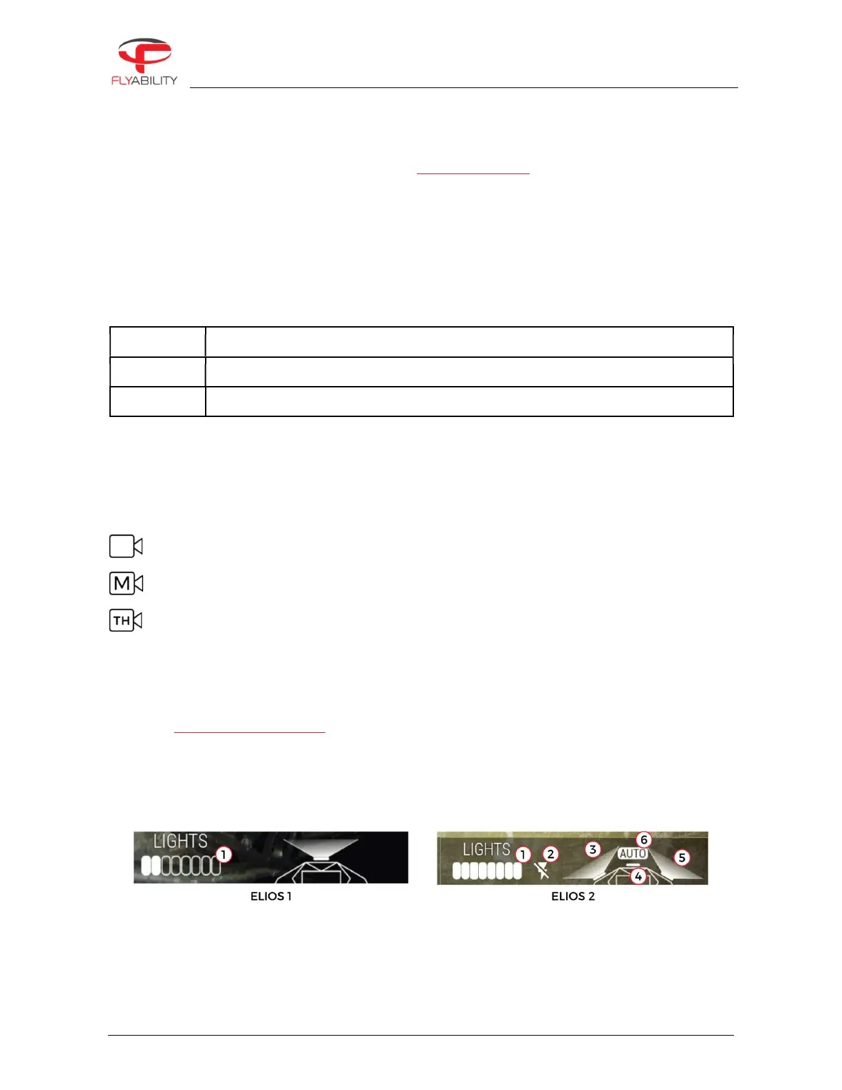 Only on ELIOS 1, Camera mode indicator (11) is related to the current mode set by the pilot using the camera