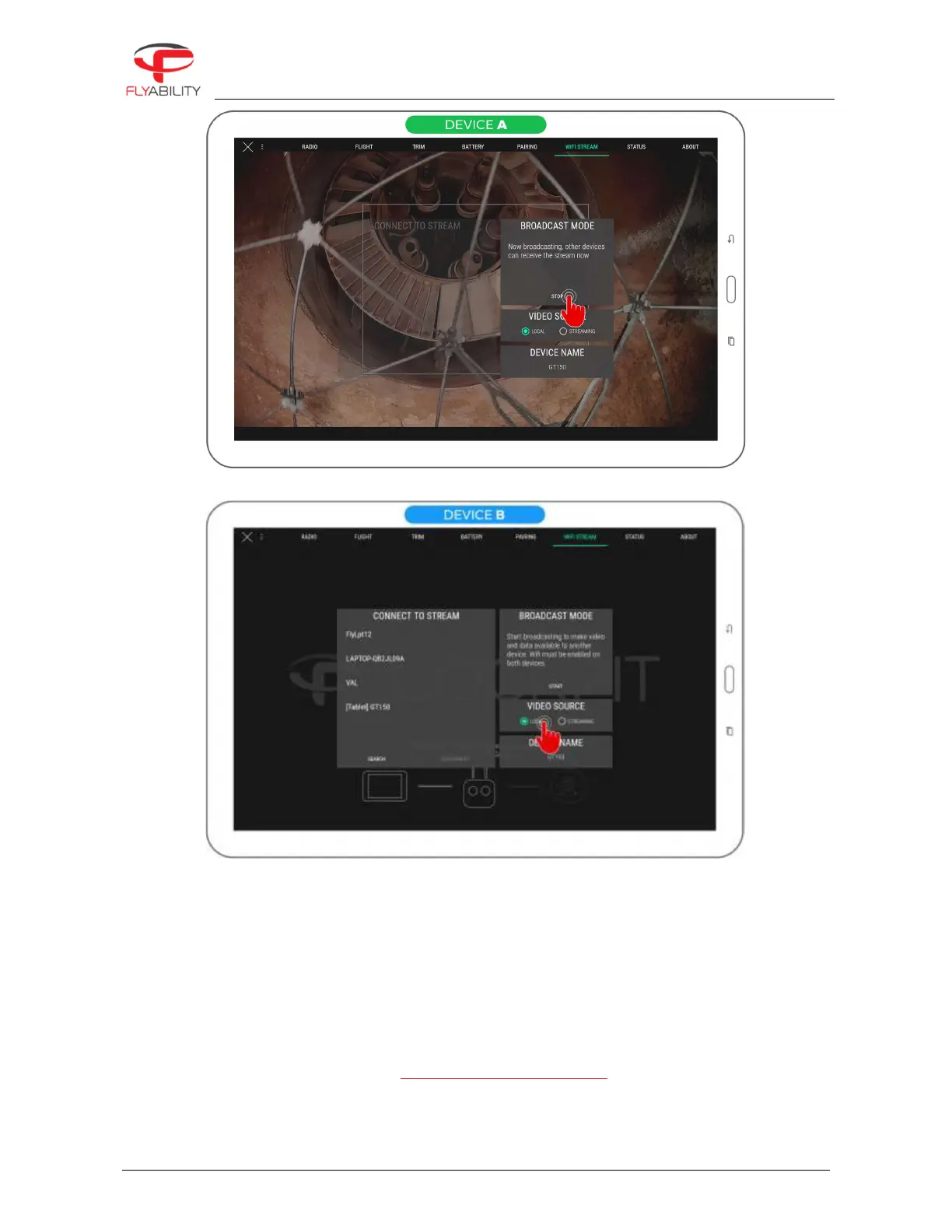 operator RC. Switch again to "streaming" source to resume footage coming from device A.