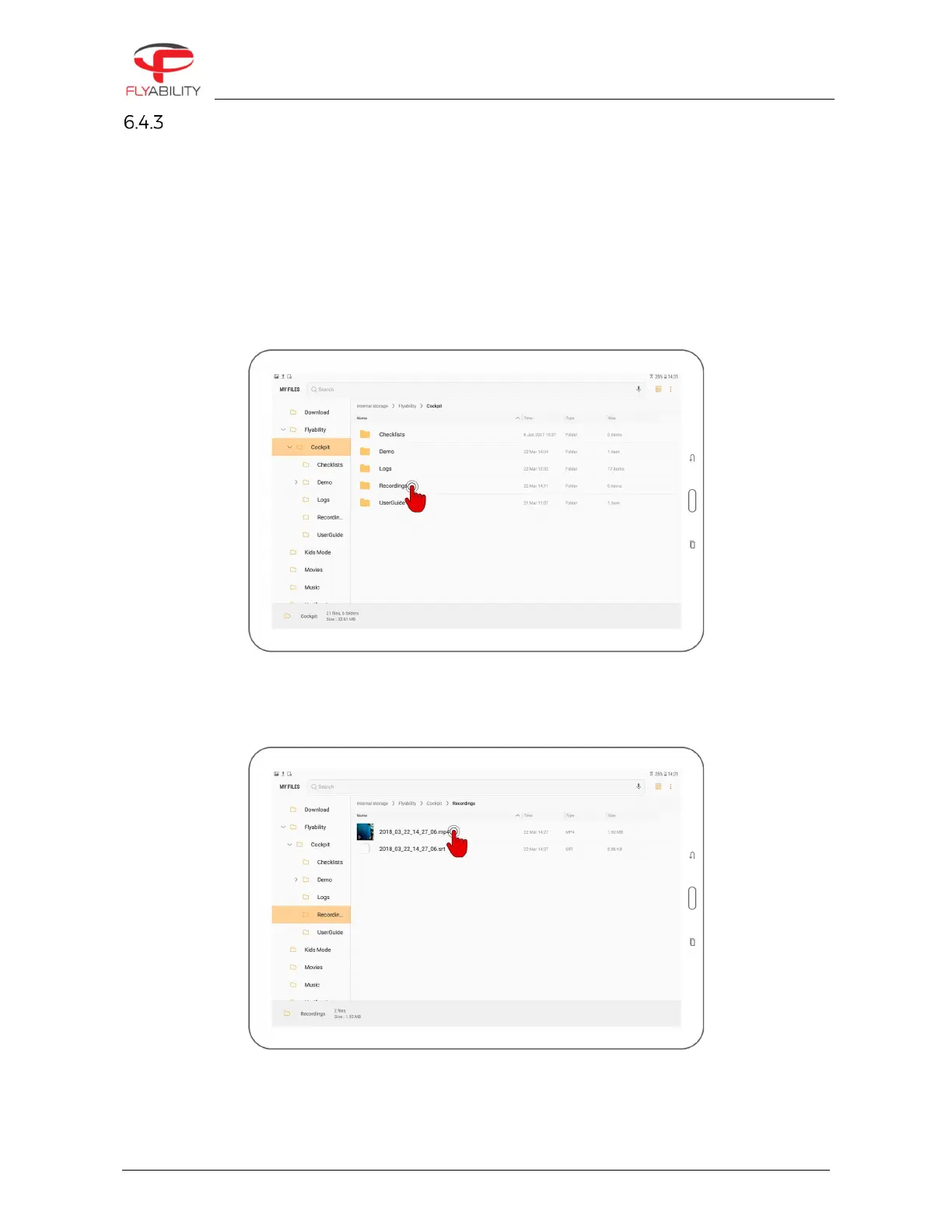 Browse into Device Storage/Flyability/Cockpit/Recordings