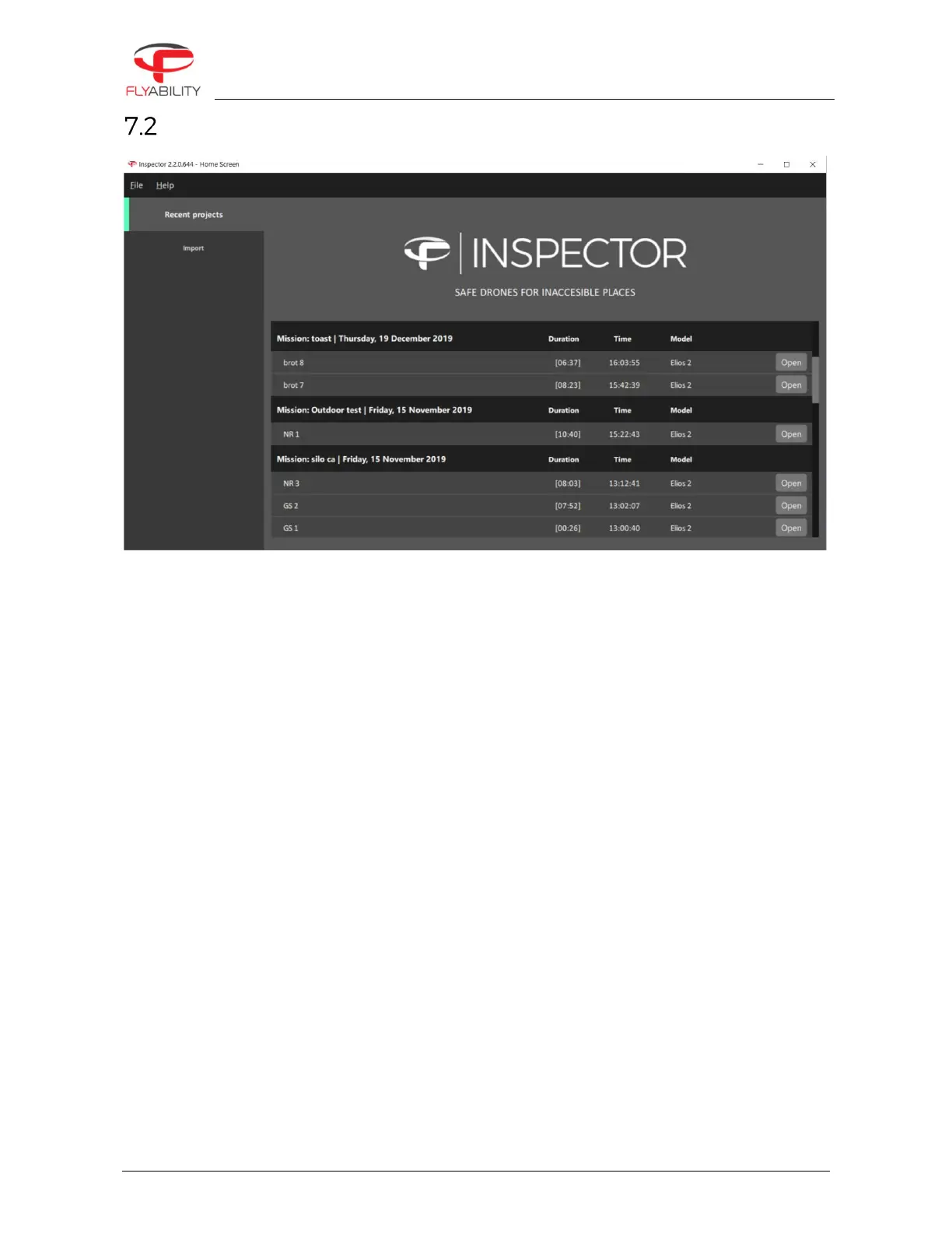 List all the flights from a directory, SD cards, or a connected Elios 2 drone. Inspector can automatically