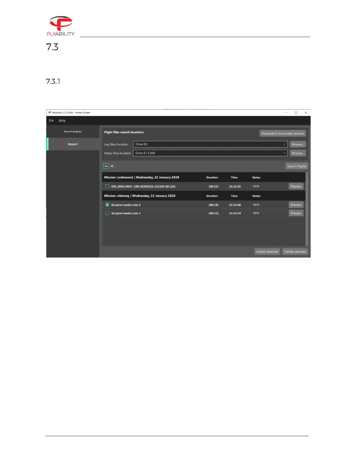 aircraft. By clicking on “Autodetect removable devices”, Inspector will check if an ELIOS 2 or if LOGs and CAM