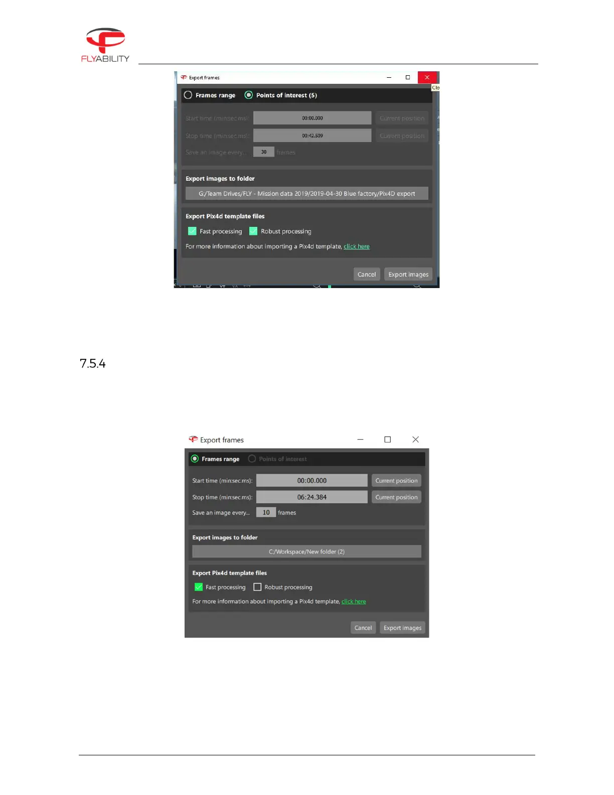 If you desire to use Pix4D to create a photogrammetric model from the exported frames, the user can