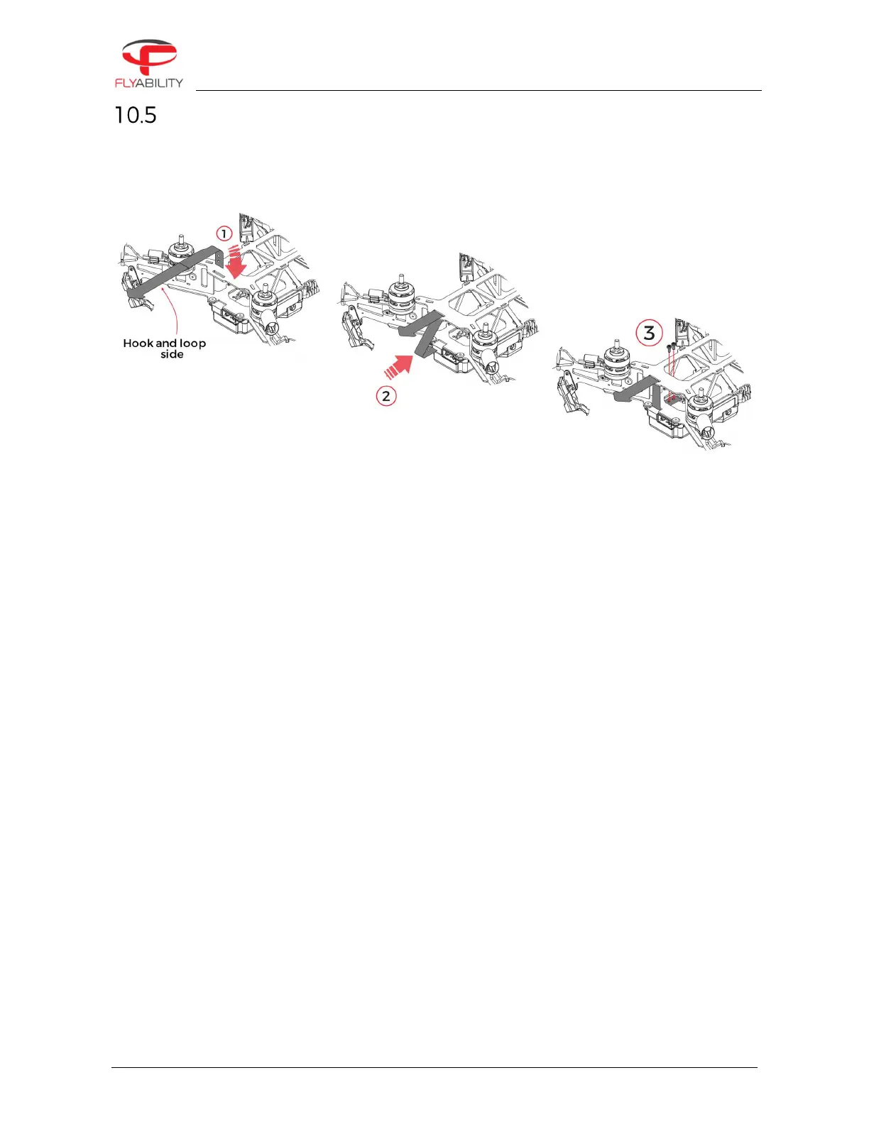 Slide the battery strap between the carbon frame and the electronic stack aligning the holes with
