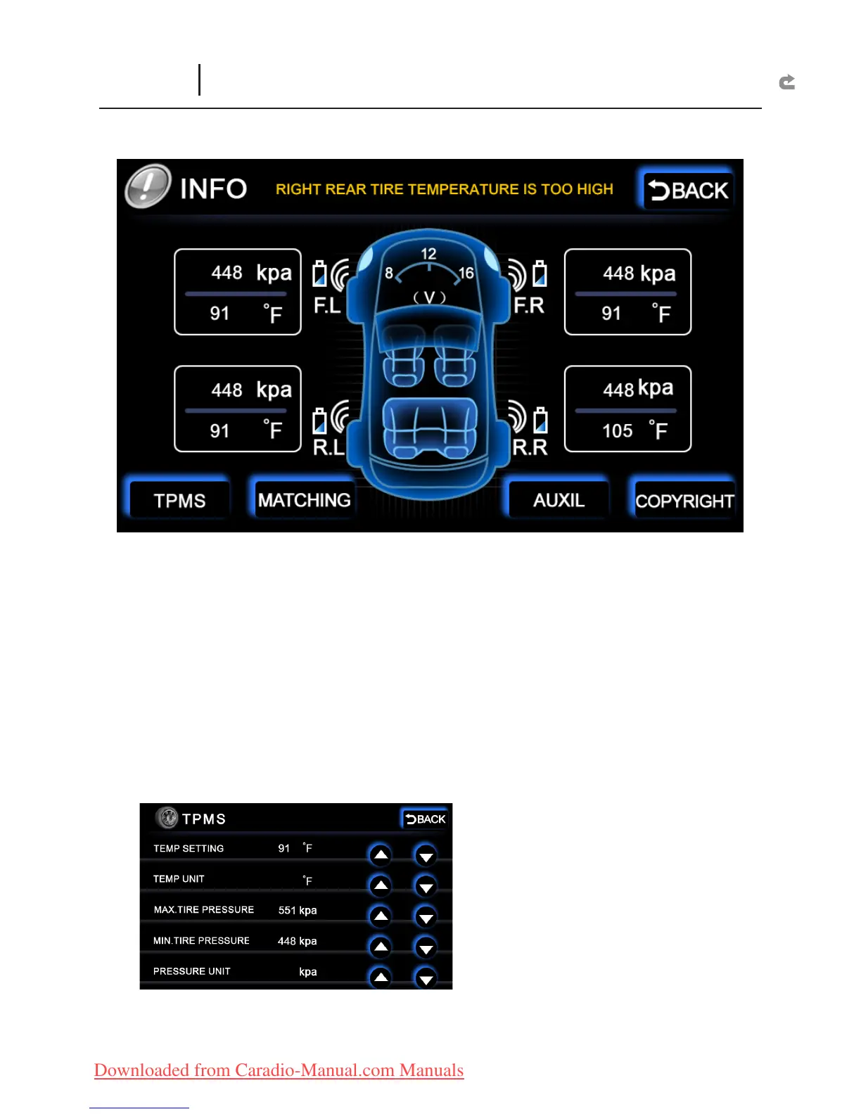 TEMP SETTING : Set the tire temperature warning value. When the temperature