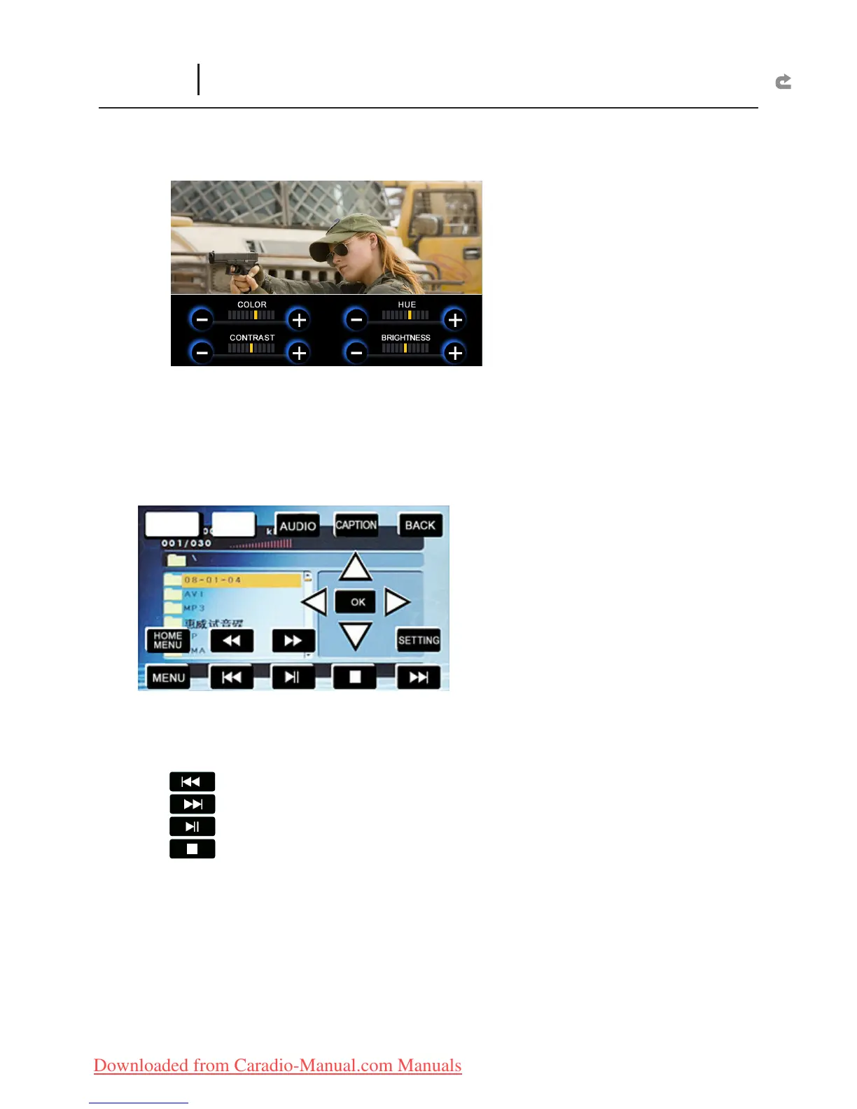 Enter Picture Quality Setup: “COLOR, HUE, CONTRAST, BRIGHTNESS”.