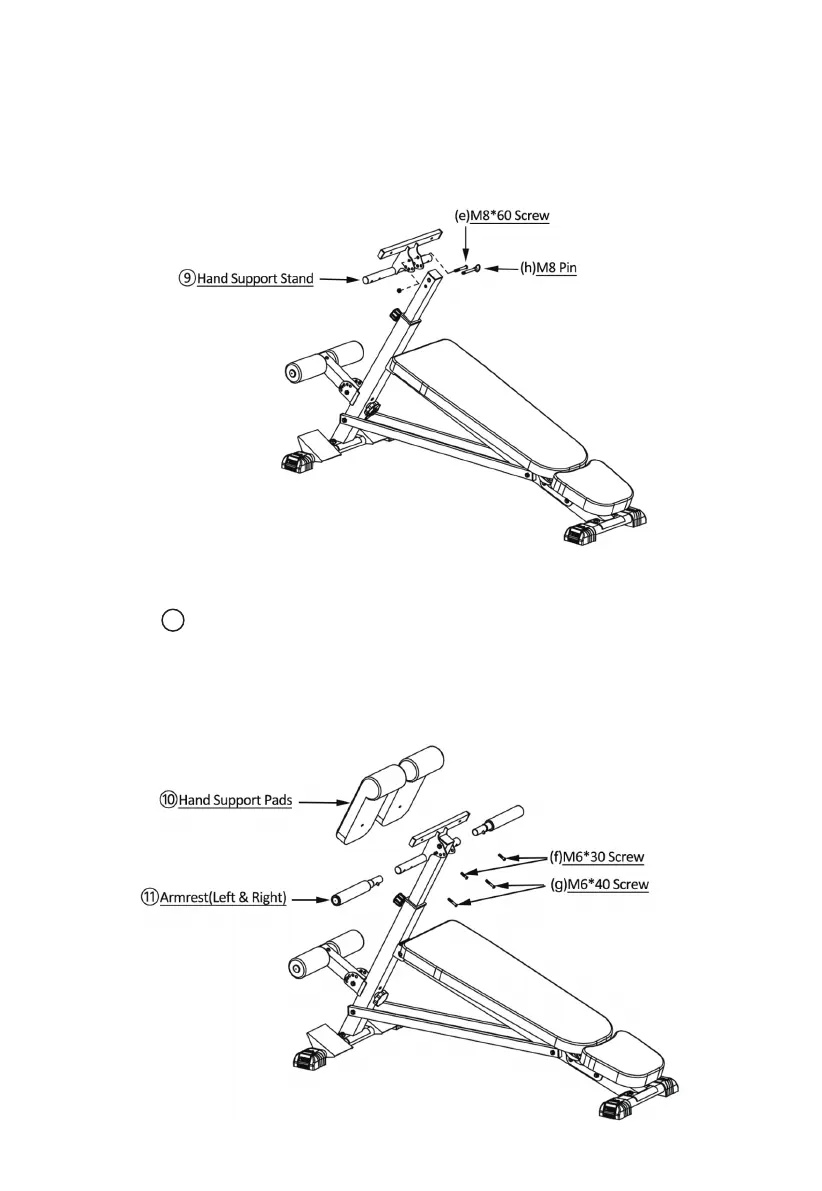 -Connect ⑩Hand Support Pads to the Stand, with 4 Screws.