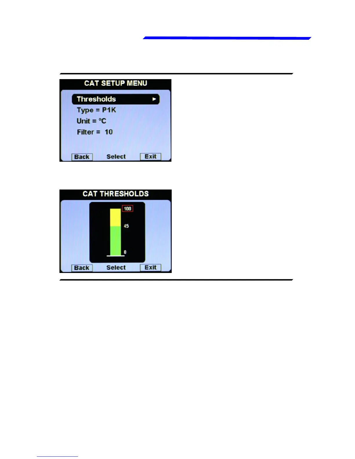 ● Unit: °C / °F: Set the unit of measure for the CAT temperature;