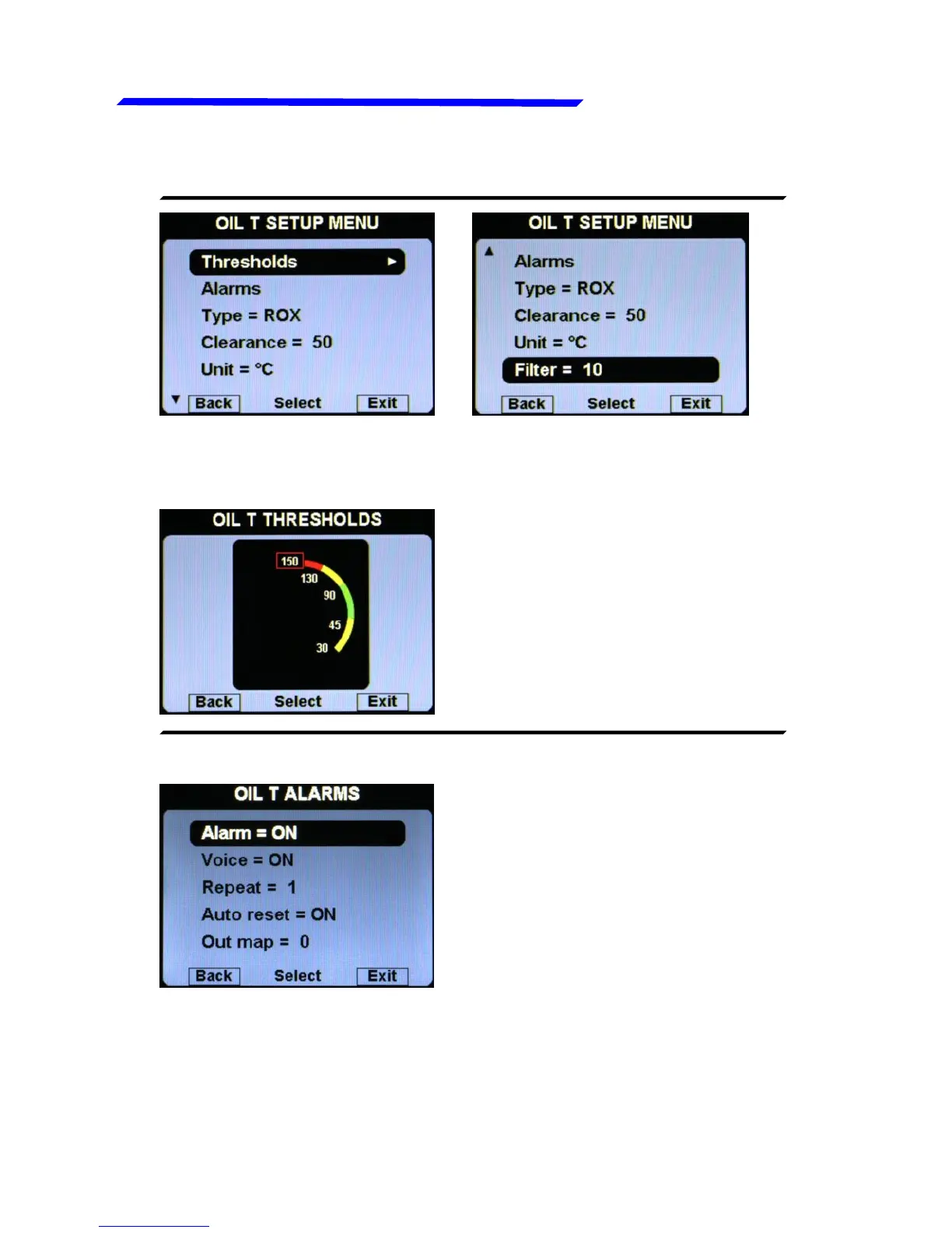 OIL TEMPERATURE SETUP MENU: