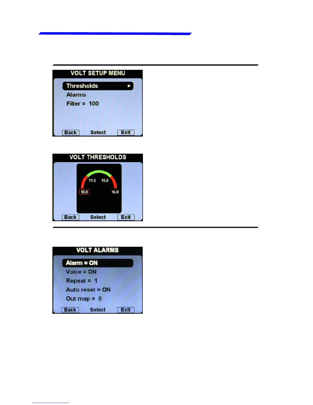 ● VOLT THRESHOLDS SUBMENU: