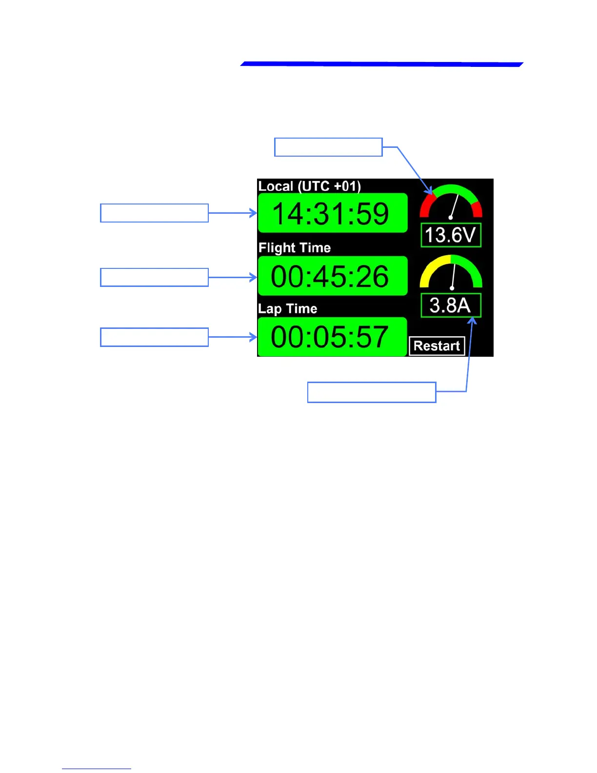 ● Lap time: The lap time starts at the same time of the flight time