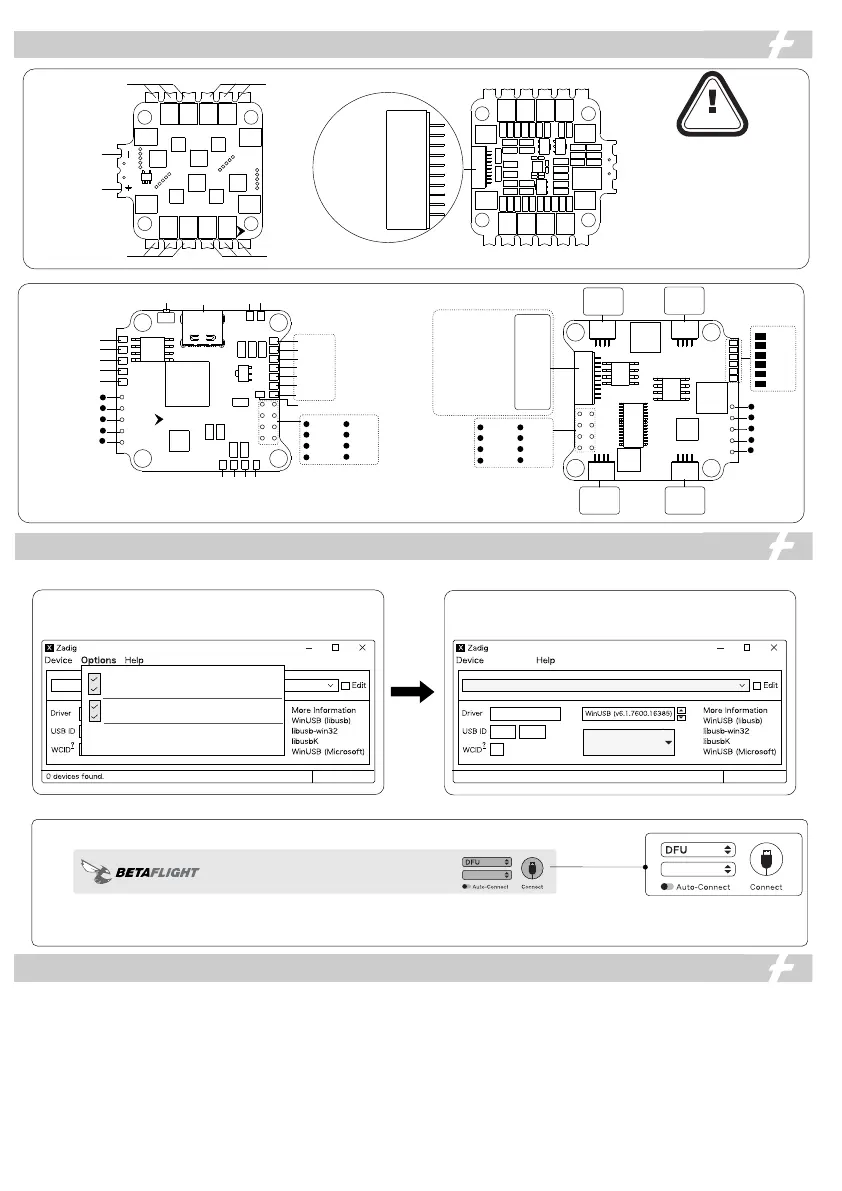 6. Start the Betaflight on the PC; Press and hold the “BOO T” on the FC, connect the FC to the P C, then the F C is connected