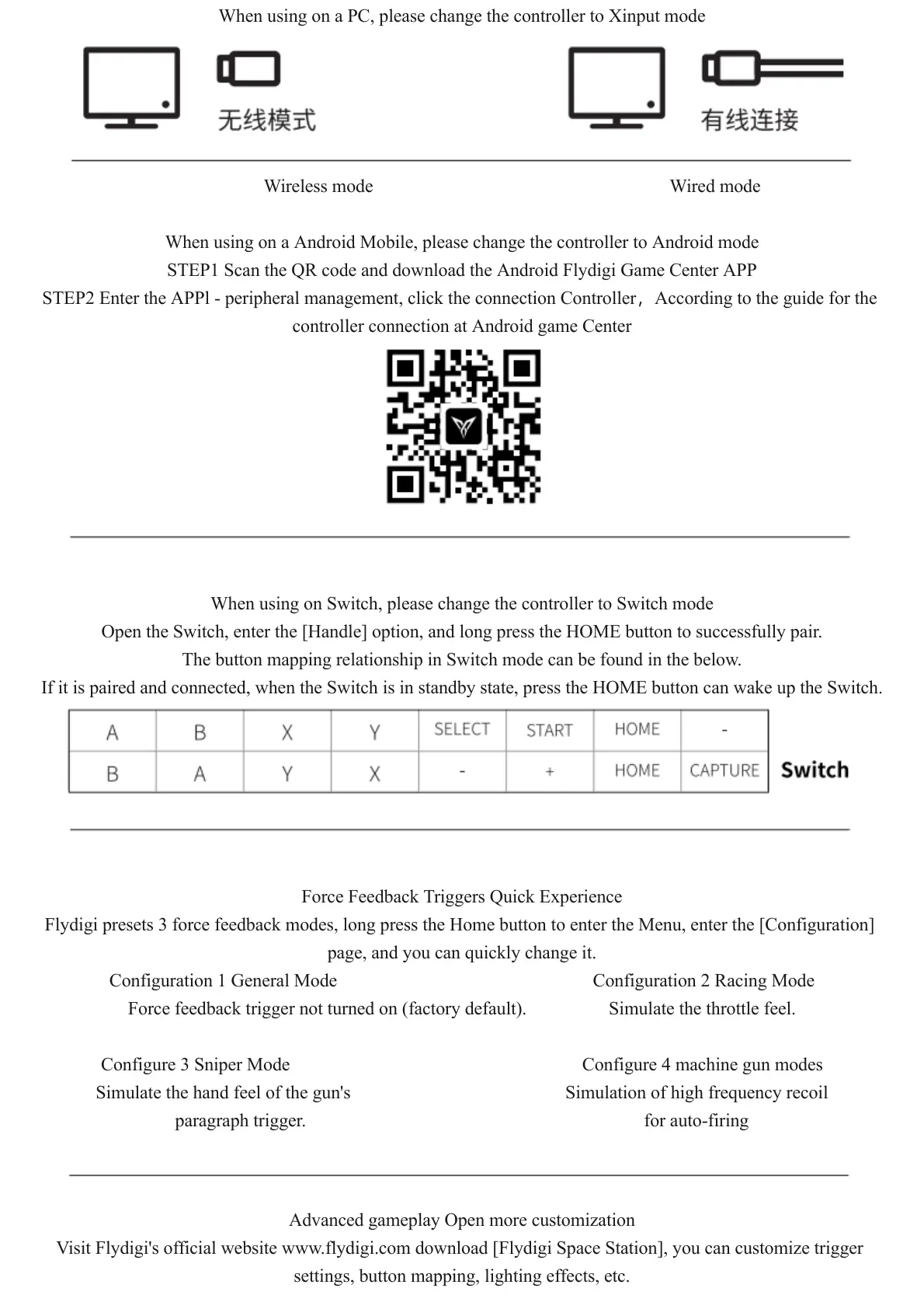 Visit Flydigi's official website www.flydigi.com download [Flydigi Space Station], you can customize trigger