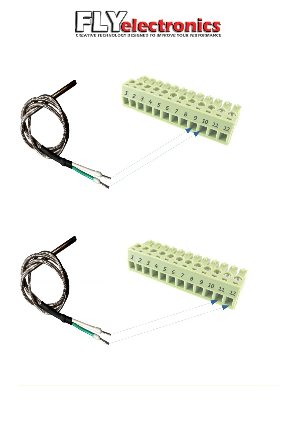 FLYelectronics MotoMonitor - Connecting T1 Sensor (EGT); Connecting T2 Sensor (CHT)
