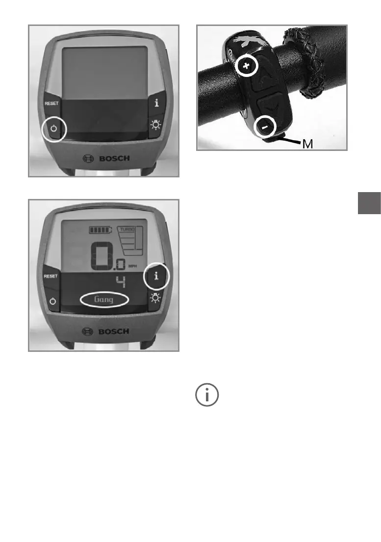 drücken, bis im Display „Gang“ erscheint. Die Ganganzeige