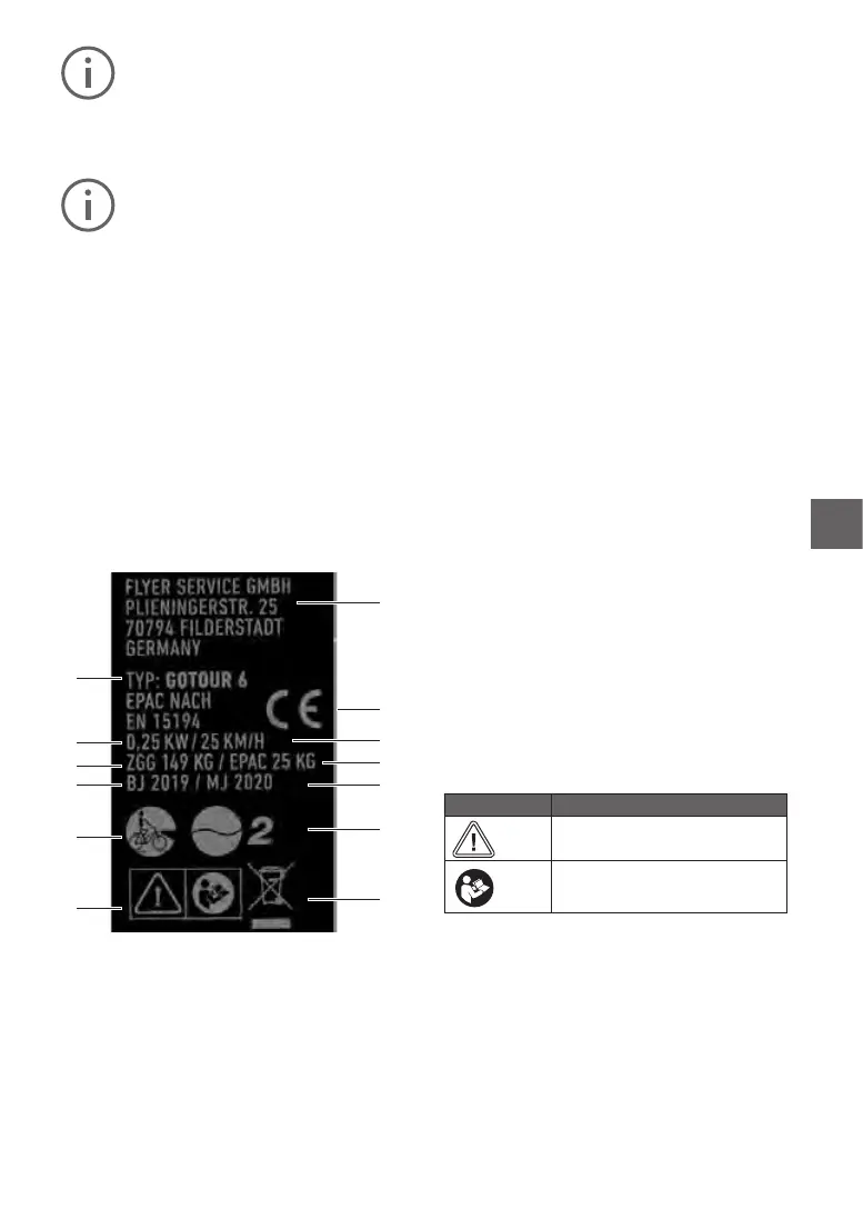 Auf dem Typenschild Ihres FLYER E-Bikes befinden sich Symbole für die Art des Pedelecs.
