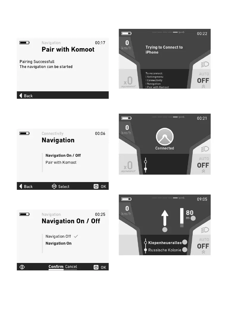 De e-bike bevindt zich nu in de navigatiemodus.