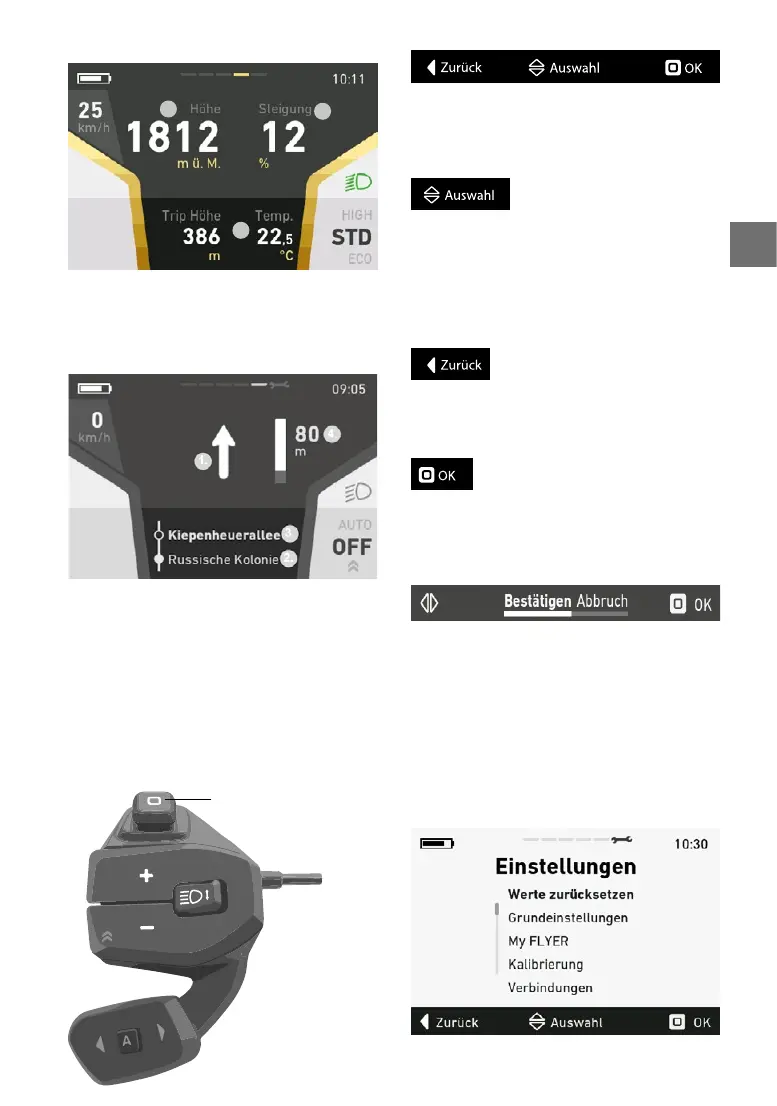 Beim Bestätigen einer Auswahl, wird im Naviga-