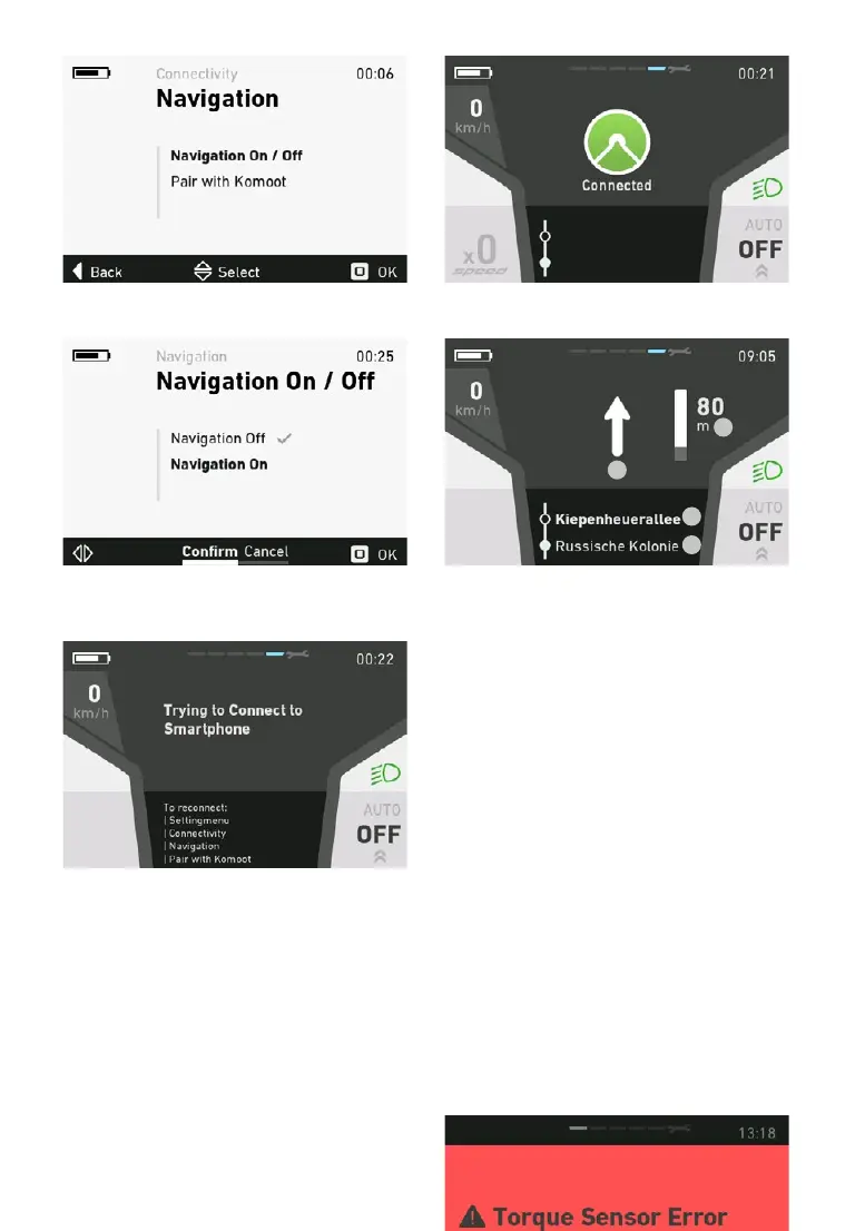 De e-bike bevindt zich nu in de navigatiemodus.