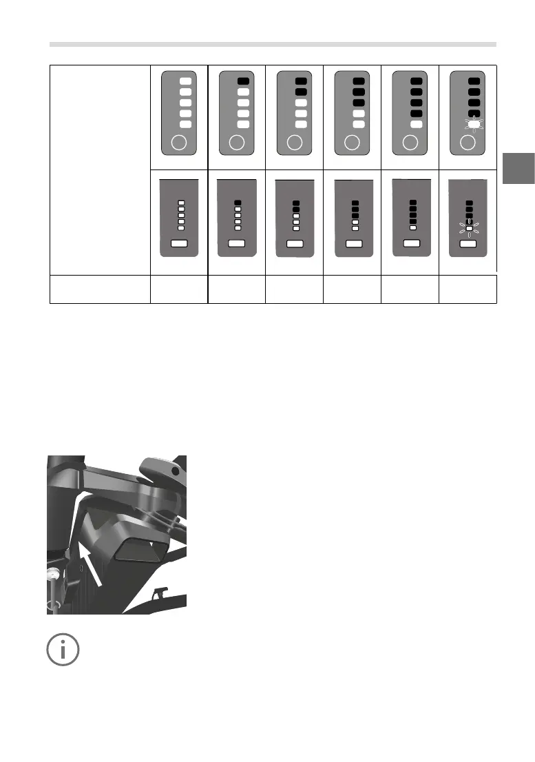 Jede leuchtende Akkuladestandsleuchte steht für ca. 20 % der Akkukapazität.