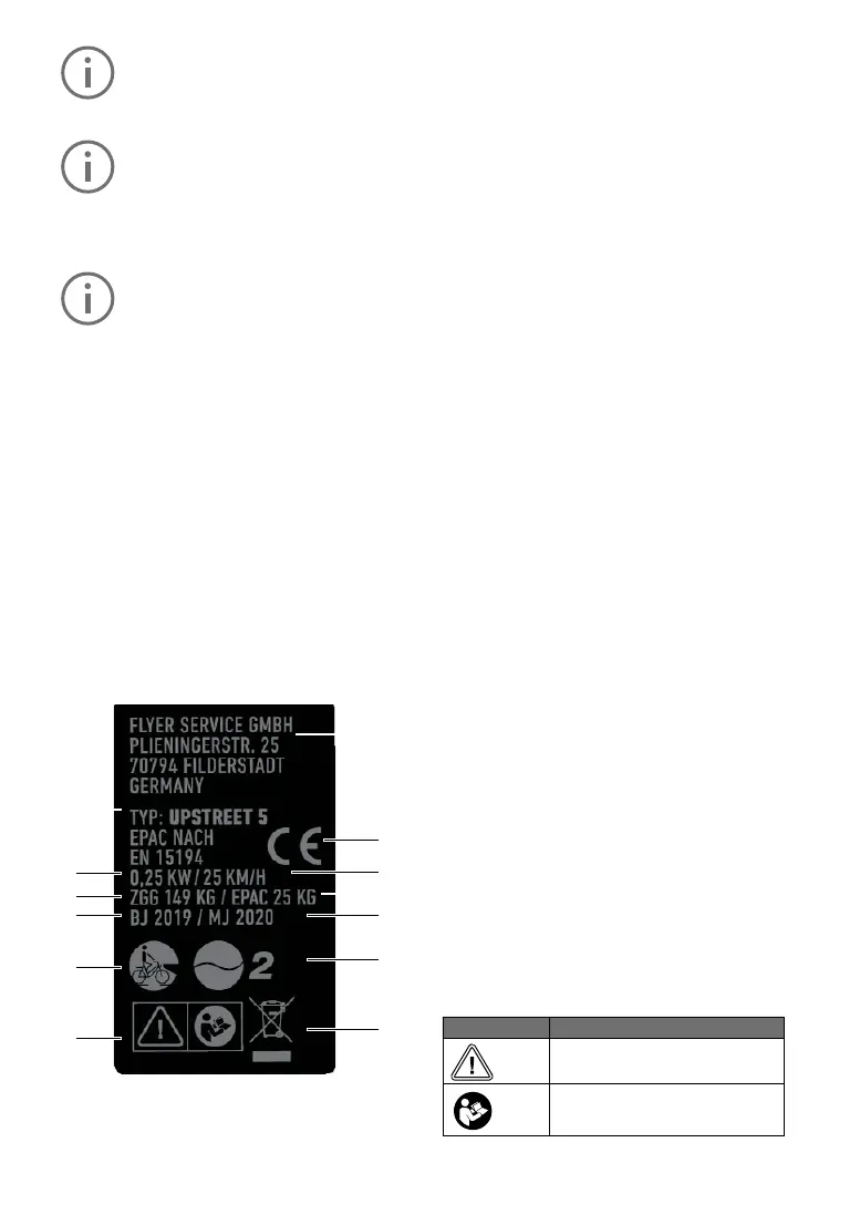 Auf dem Typenschild Ihres FLYER E-Bikes befinden sich Symbole für die Art des Pedelecs.