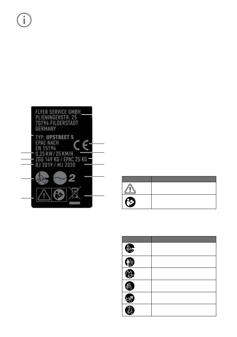 Auf dem Typenschild Ihres FLYER E-Bikes befinden sich Symbole für die Art des Pedelecs.