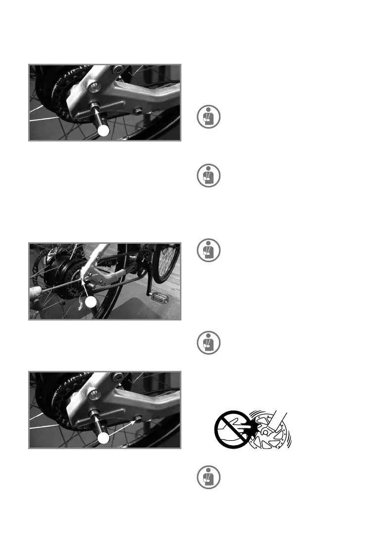 en het achterwiel goed zijn gemonteerd.