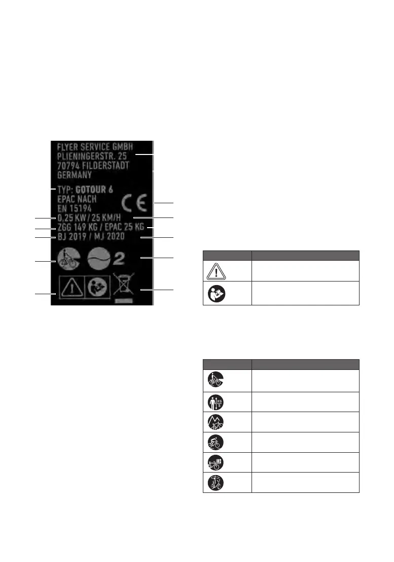 Auf dem Typenschild Ihres FLYER E-Bikes befinden sich Symbole für die Art des Pedelecs.