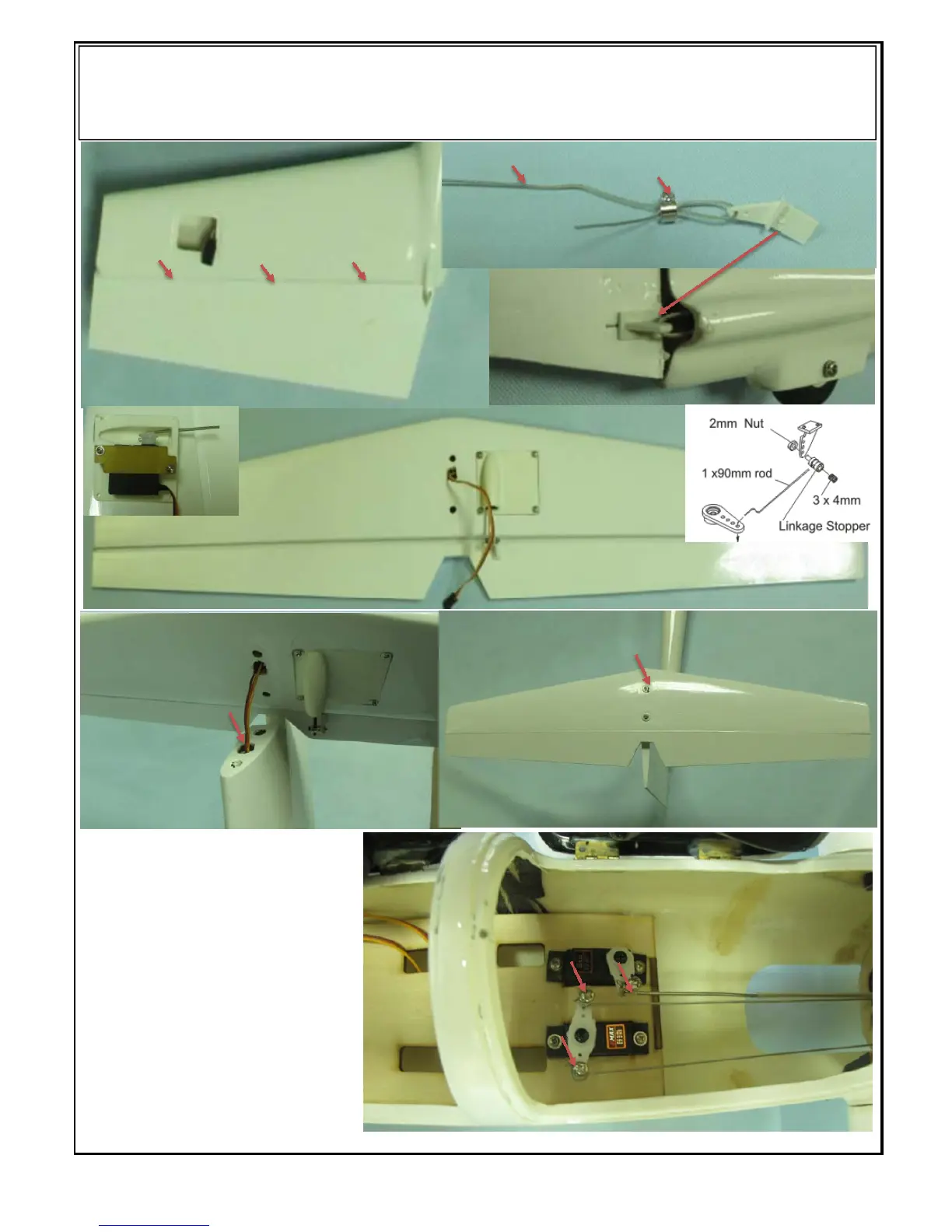 (2). Installing elevator & Tail Rudder: need to preparing 17g metal servos*2 pcs (FF item no:FF9-912)