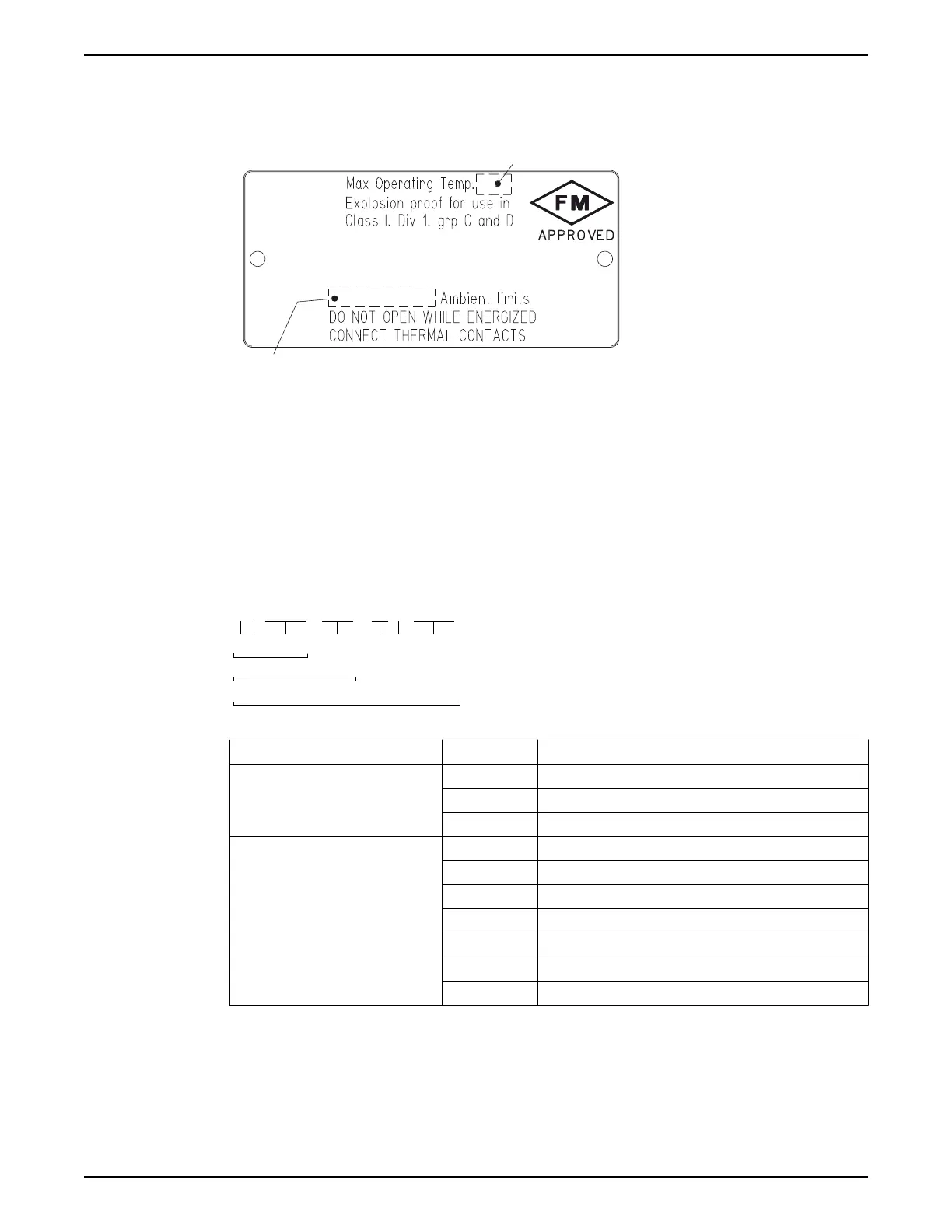 This illustration describes the FM approval plate and the information that is contained in