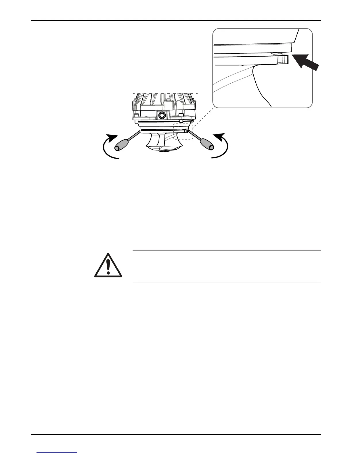 Beware of the pinch point hazard between the rotating impeller and the