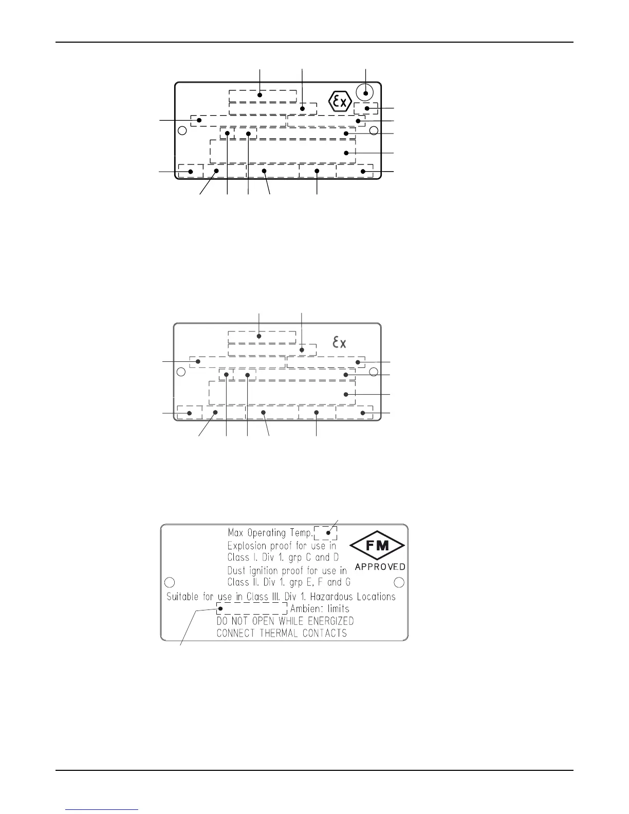 This illustration describes the IEC approval plate and the information contained in its fields.