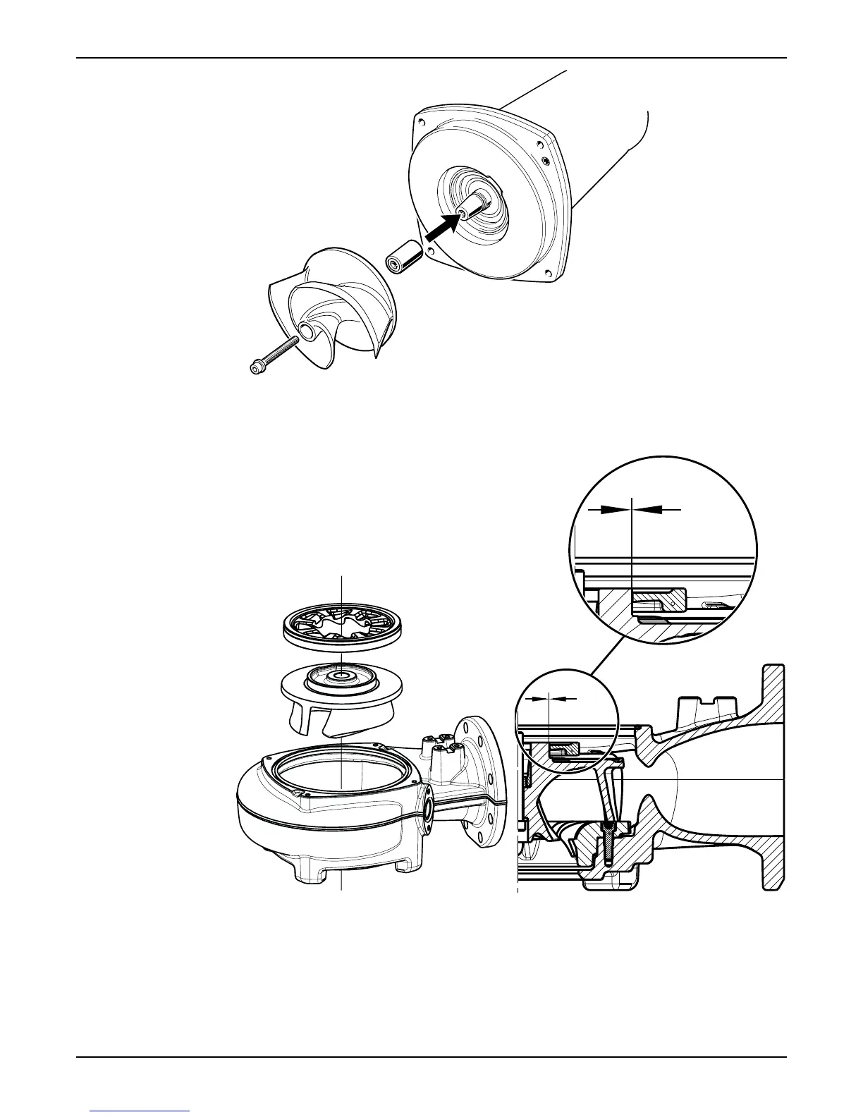 2. If applicable, check that the clearance between the impeller and the insert ring is