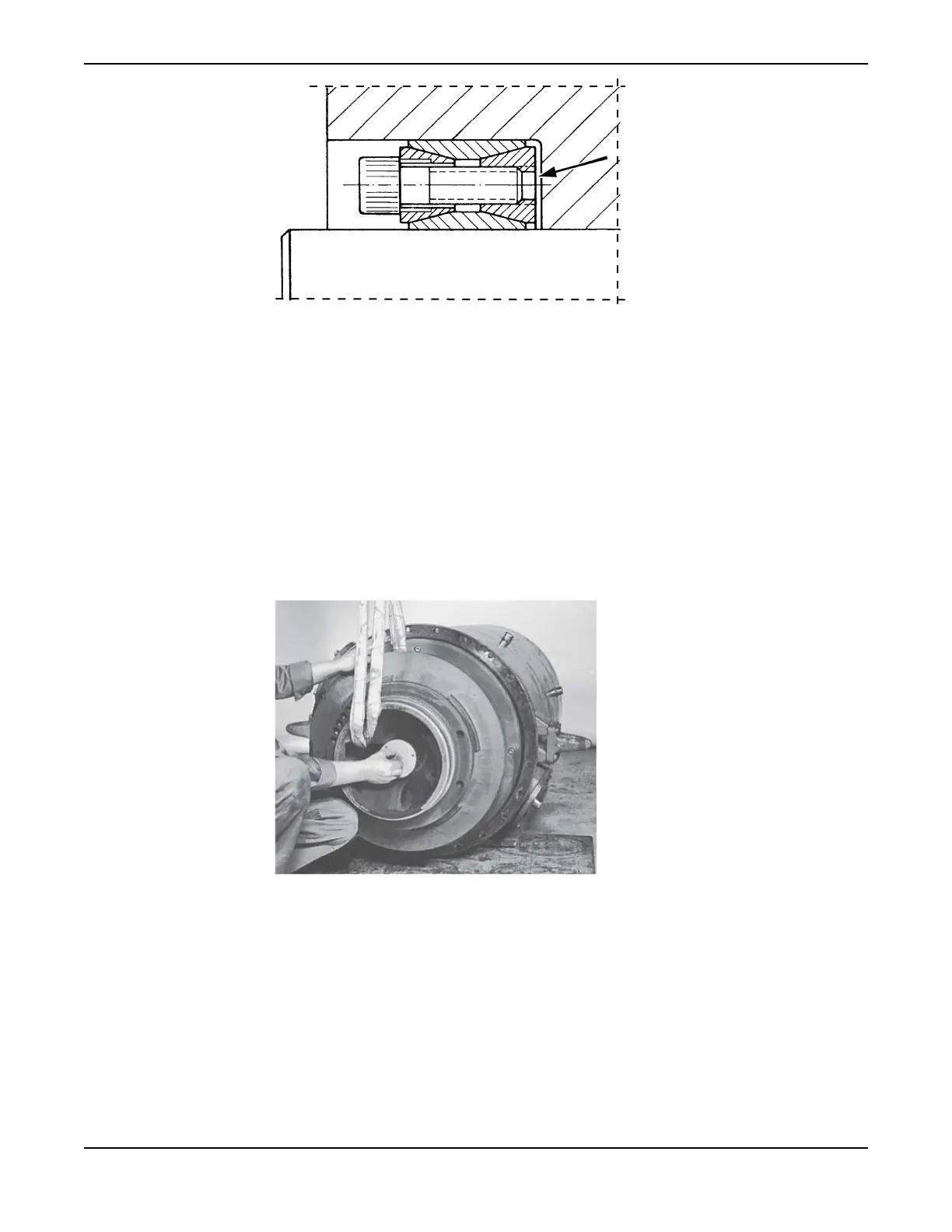 b) Fit the impeller screw, or the screw unit (with hydraulic tool if applicable), through the center hole