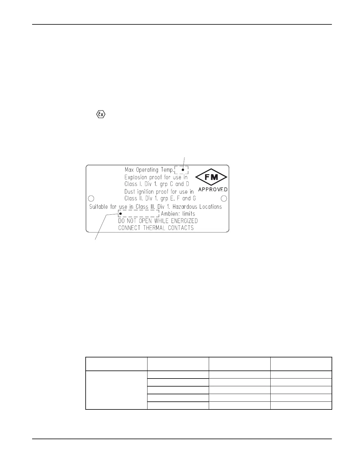 This illustration describes the approval plate for Factory Mutual (FM) and the information contained in its