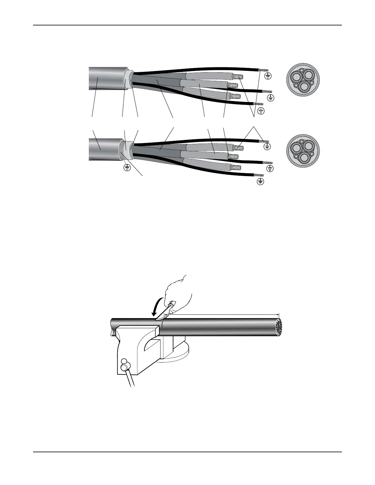 The upper illustration (A) shows a cable without screen. The lower illustration (B) shows a screened cable.
