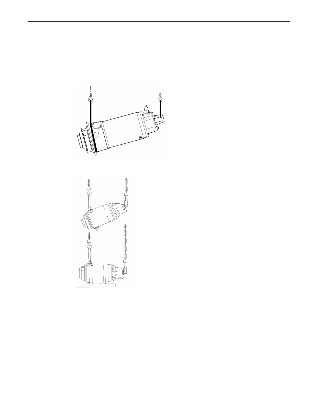 Two sets of lifting equipment must be used to lift the pump for repair work.