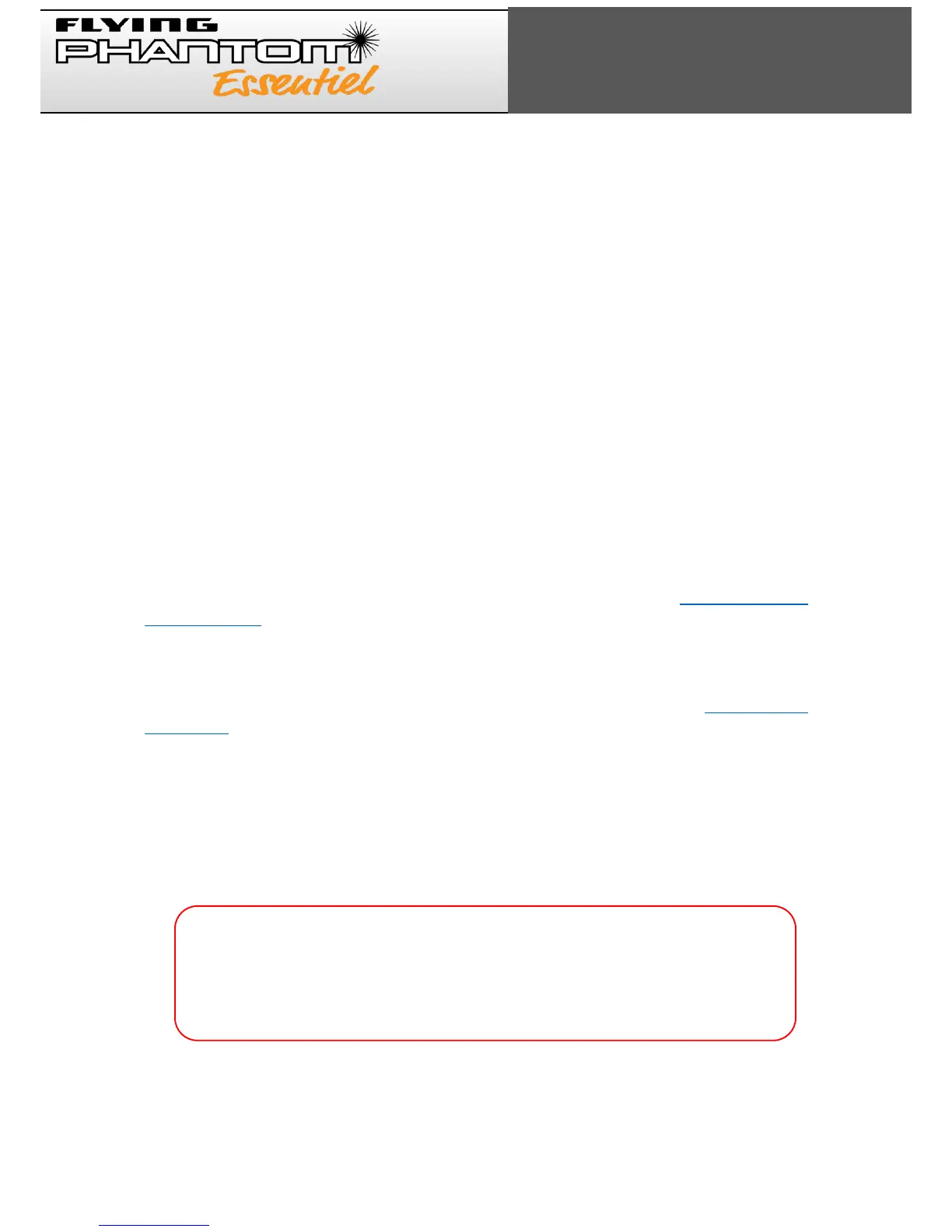 your Flying Phantom Essent iel, as well as maintenance recommendations and the compulsory safety