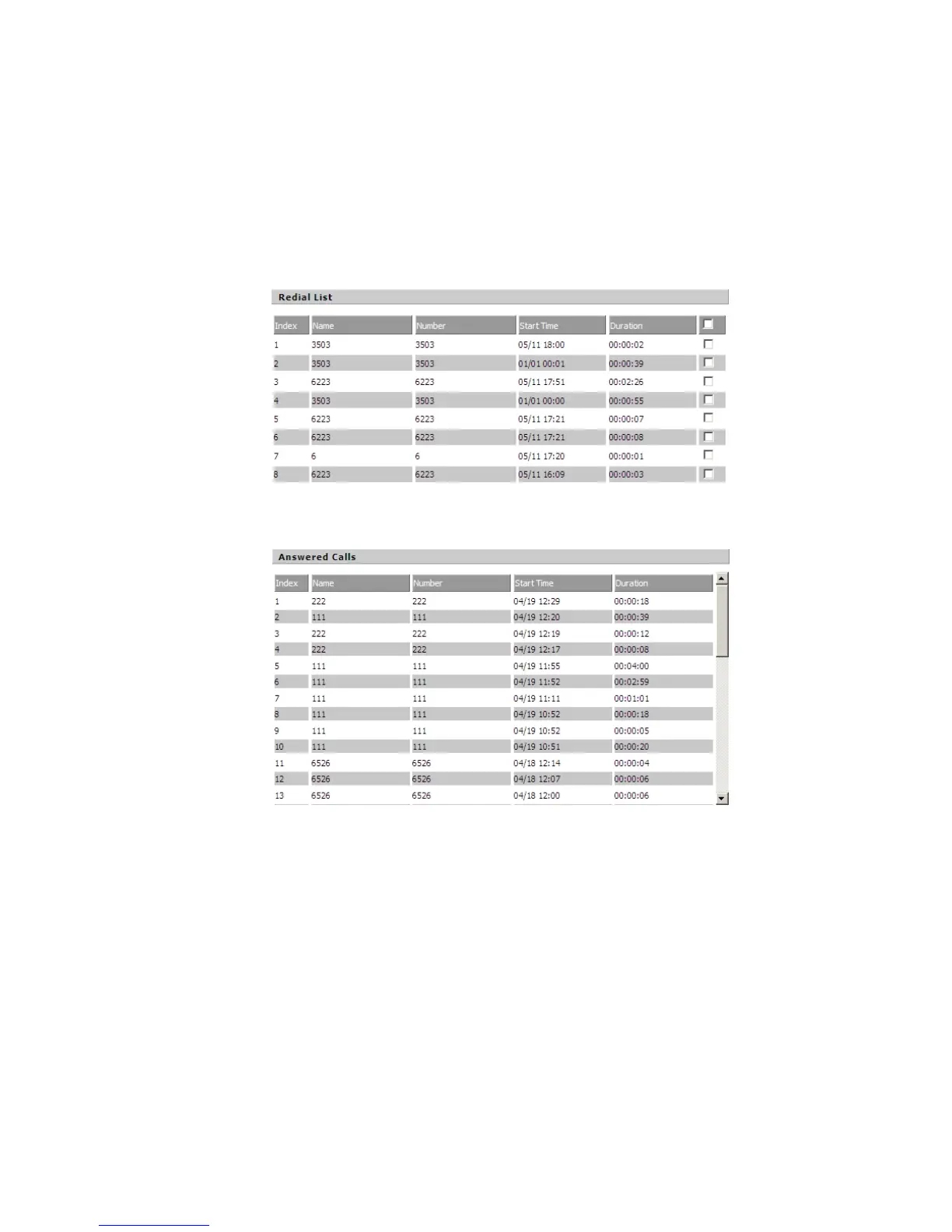 Flying Voice Technology IP542N - Redial List; Answered Calls